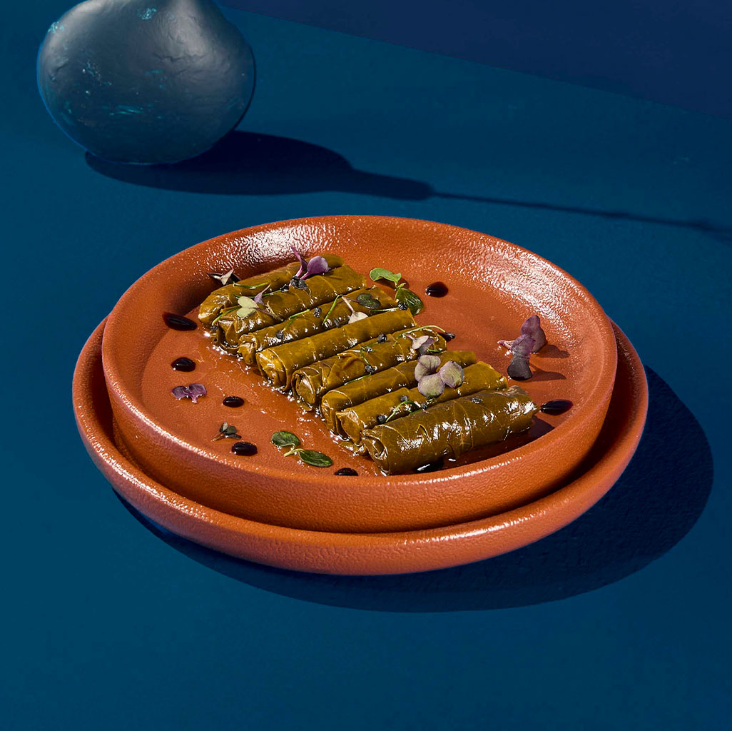 vine leaves stuffed with goat labneh